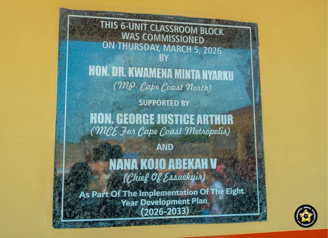 On Thursday, March 5, 2026, the Mayor of Cape Coast, George Justice Arthur, together with the Member of Parliament for Cape Coast North, Kwamena Minta Nyarku, the Metro Education Directorate, and the Nananom of Esuekyir, commissioned a newly constructed 6-unit classroom block with ancillary facilities at Esuekyir M/A Basic School.