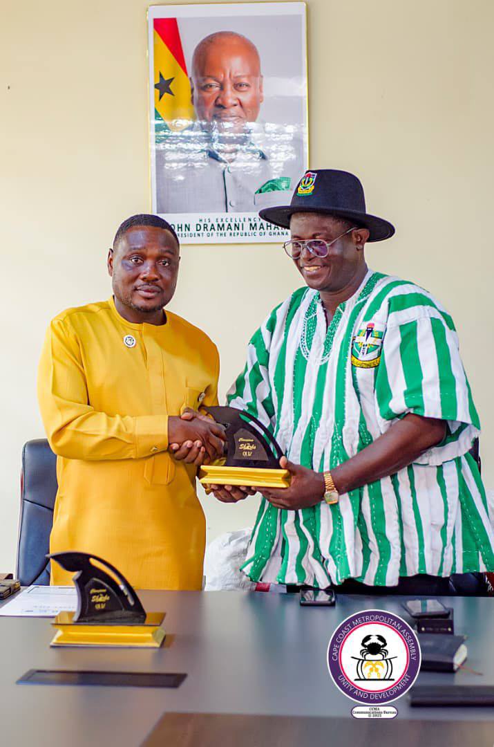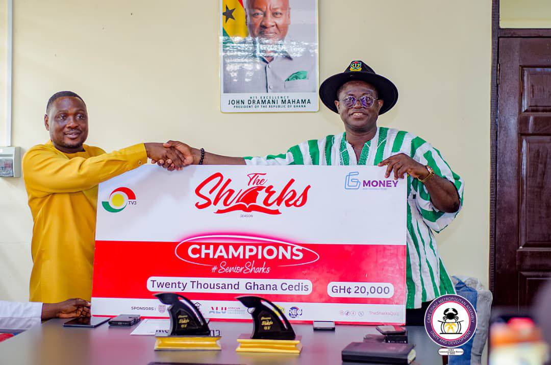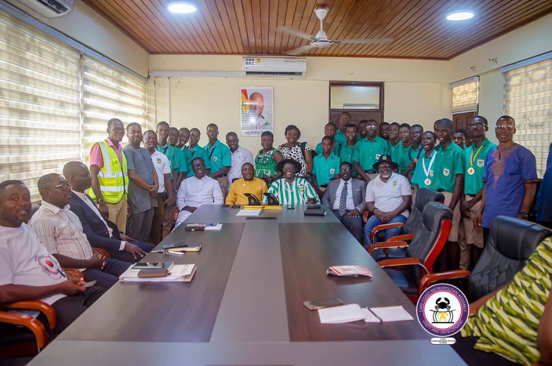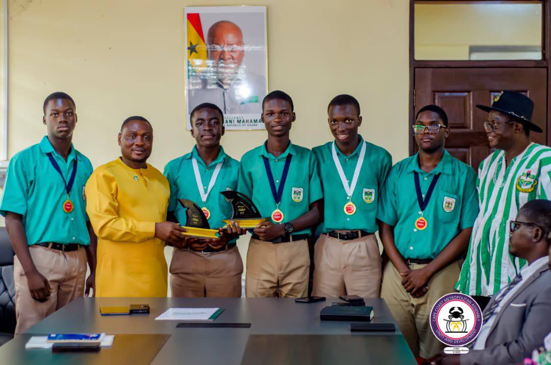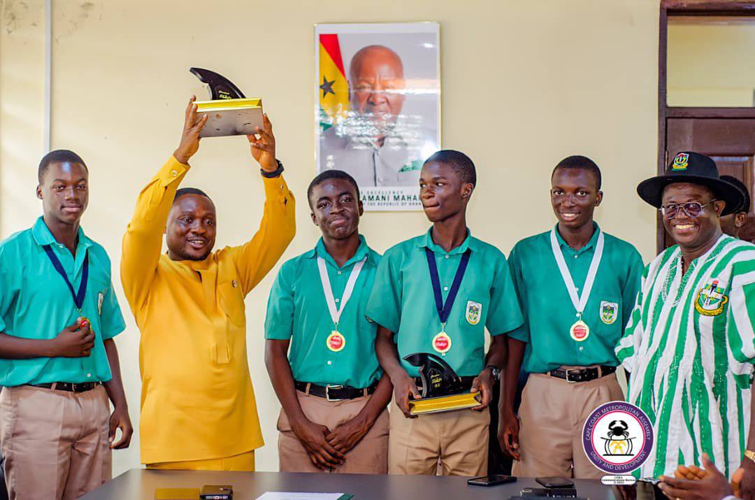 Academic excellence in Cape Coast continues to shine on the national stage, as the Metropolitan Chief Executive, George Justice Arthur, hosted the victorious team from St. Augustine’s College following their triumph in the prestigious Sharks Quiz Competition.